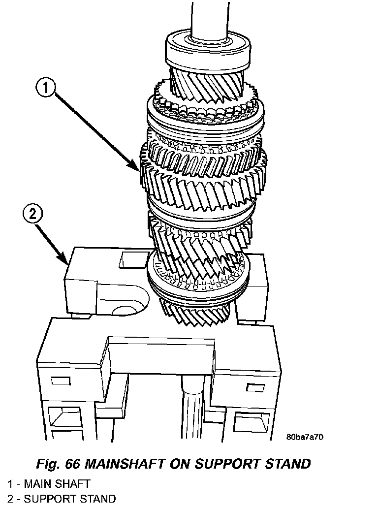 5. Slide countershaft into fixture slot. Verify countershaft and output shaft gears are fully meshed with the mainshaft gears.