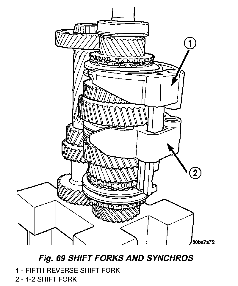 8. Install assembled shift forks in synchro sleeves. Verify forks are seated in sleeves.