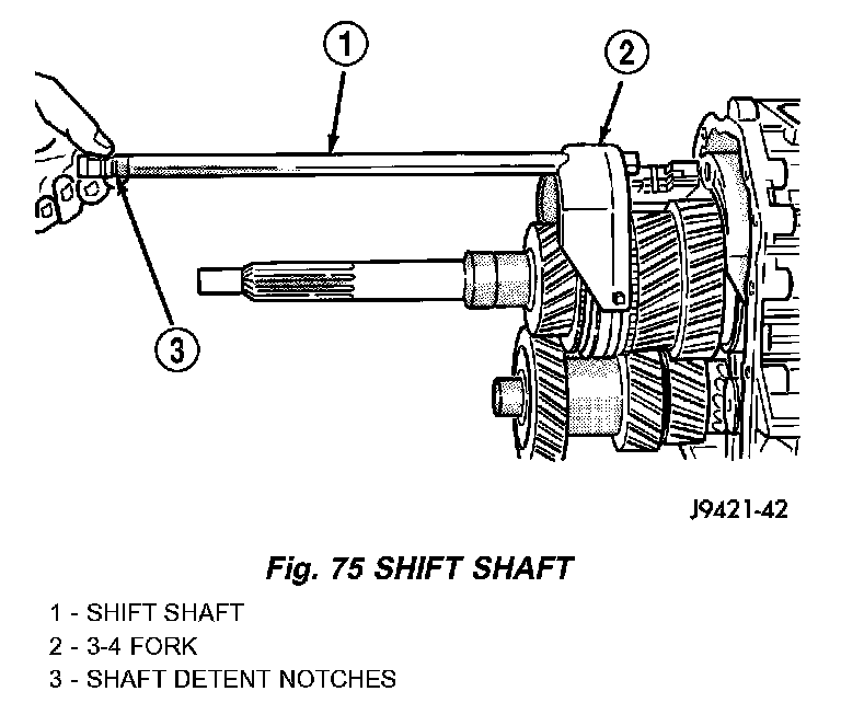CAUTION: Positioning of the shift shaft detent notch is important. Both of the shaft roll pins can be installed even when the shaft is 180° off. If this occurs, transmission will have to be disassembled to correct shaft alignment.