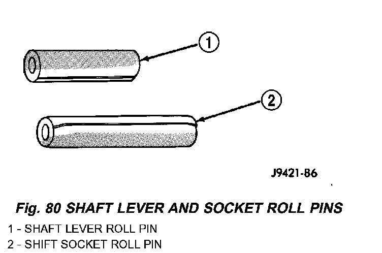9. Select correct new roll pin for shift shaft lever. Shaft lever roll pin is approximately 22 mm (7/8 in.) long. Shift socket roll pin is approximately 33 mm (1-1/4 in.) long.