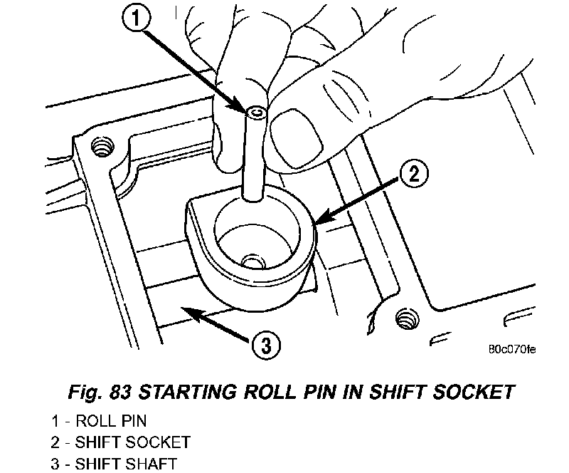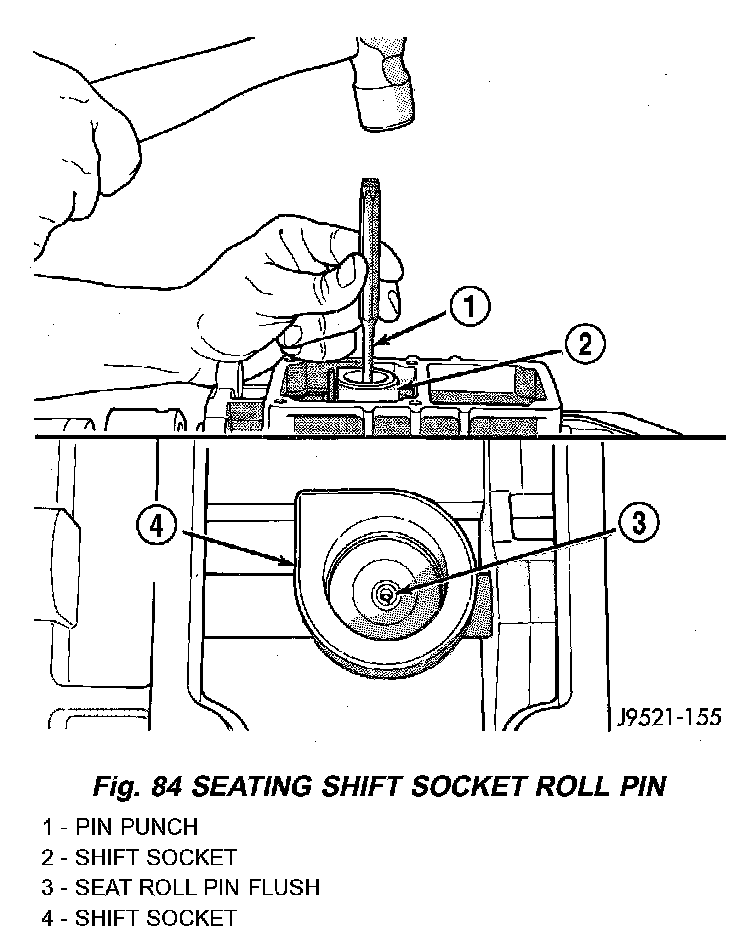14. Seat roll pin in shift socket with pin punch. Roll pin must be instated flush with socket.