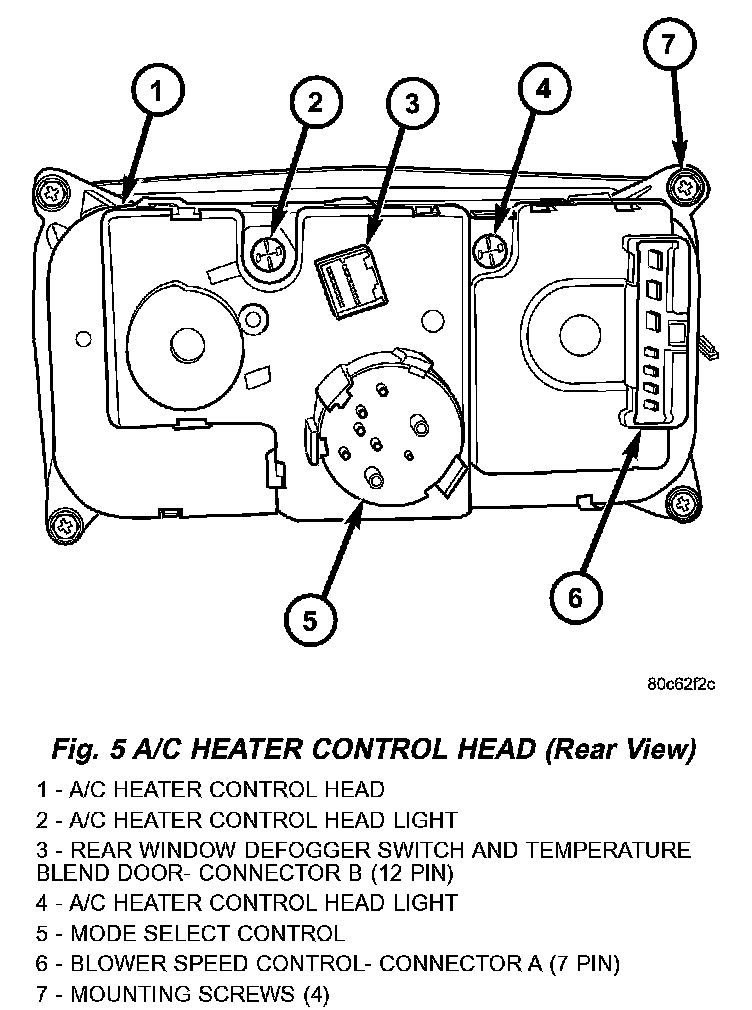 1. Disconnect and isolate the battery negative cable. Remove the HVAC control head assembly from the instrument panel and unplug the defogger switch wire harness connector-B.