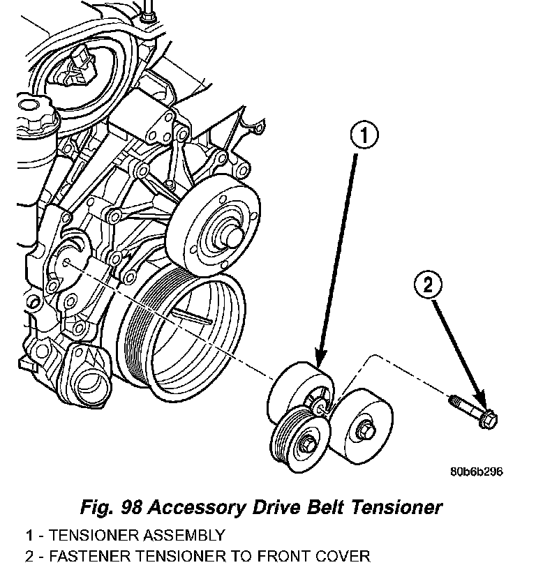 7. Remove accessory drive belt tensioner assembly (Fig. 98).