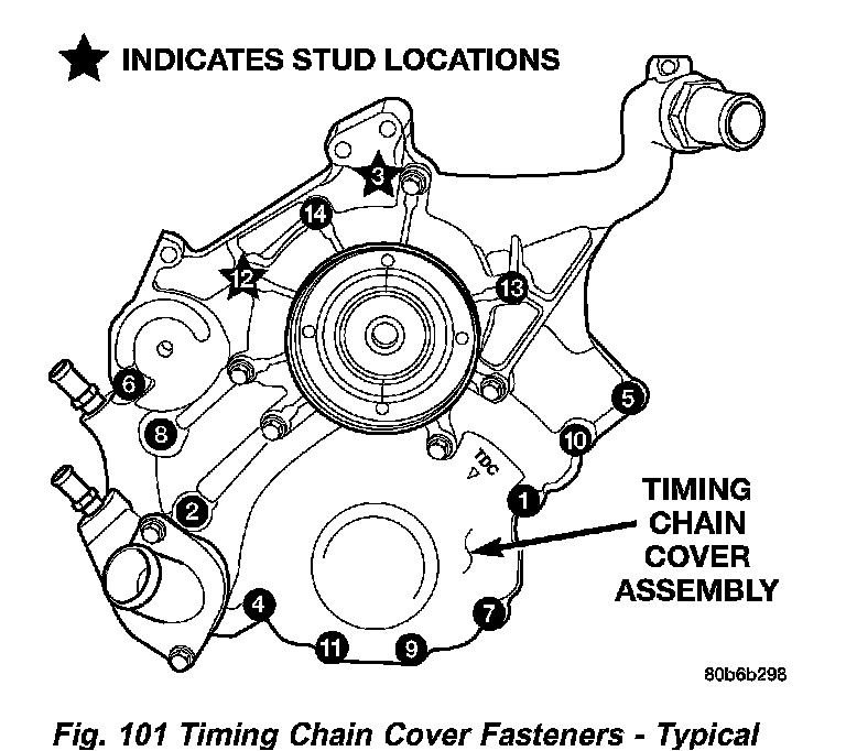 NOTE: It is not necessary to remove the water pump for timing cover removal.