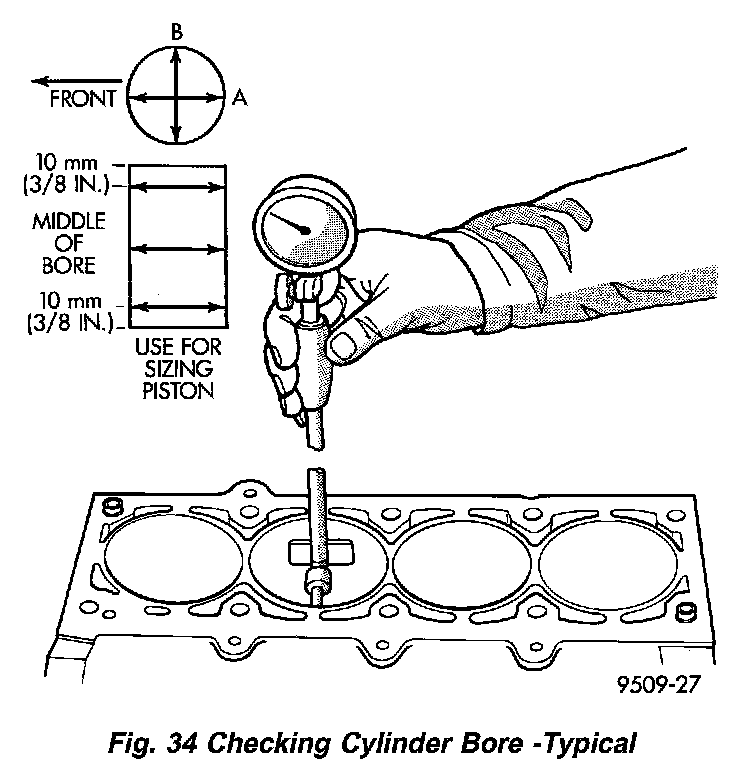 STANDARD PROCEDURE - PISTON TO CYLINDER BORE FITTINGFig. 34 Checking Cylinder Bore - Typical: