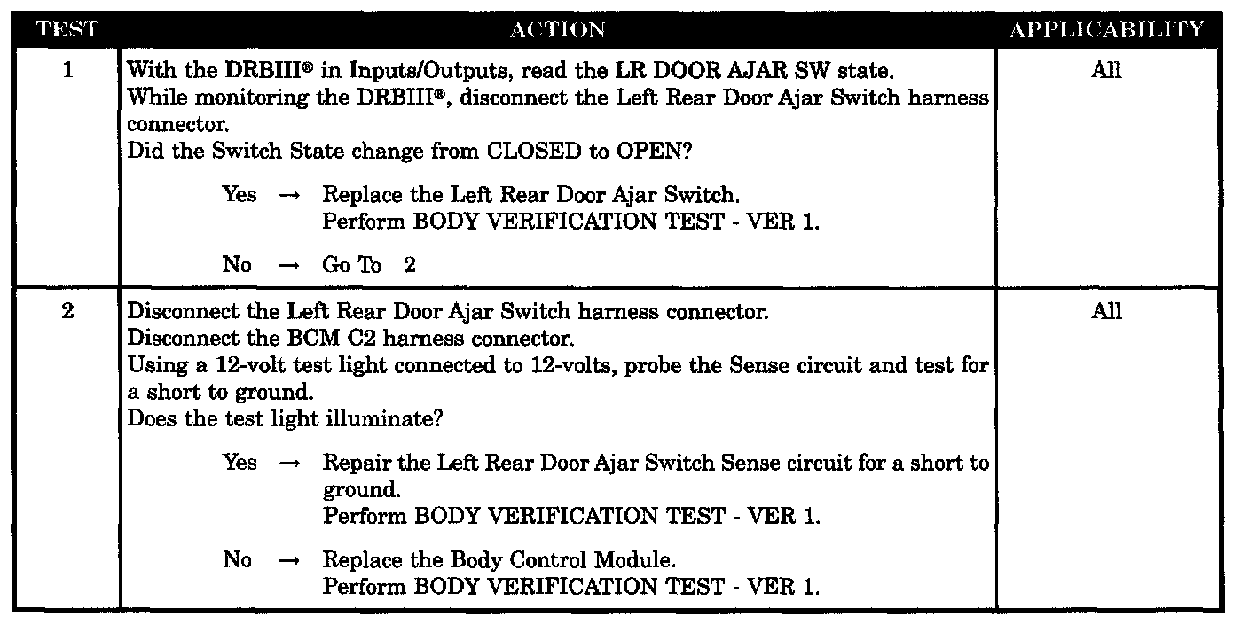 LEFT REAR DOOR AJAR CIRCUIT SHORTED TO GROUND