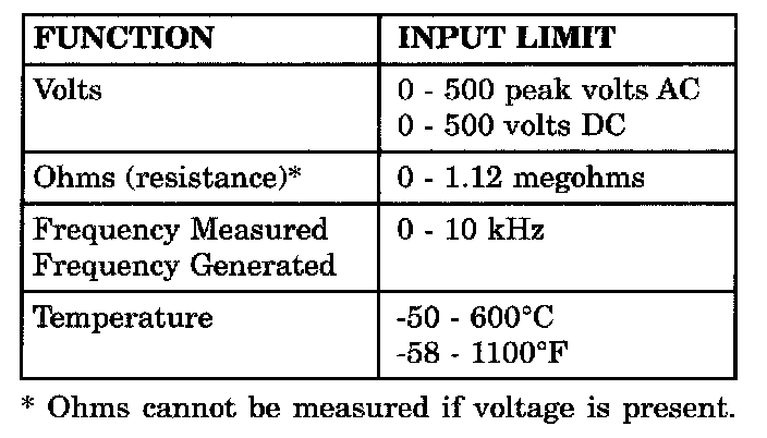 WARNING: EXCEEDING THE LIMITS OF THE DRBIII MULTIMETER IS DANGEROUS. IT CAN EXPOSE YOU TO SERIOUS INJURY. CAREFULLY READ AND UNDERSTAND THE CAUTIONS AND THE SPECIFICATION LIMITS.Follow the vehicle manufacturer's service specifications at all times.