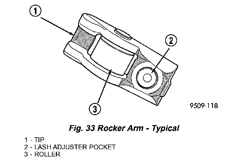 Inspect the rocker arm for wear or damage (Fig. 33). Replace as necessary.