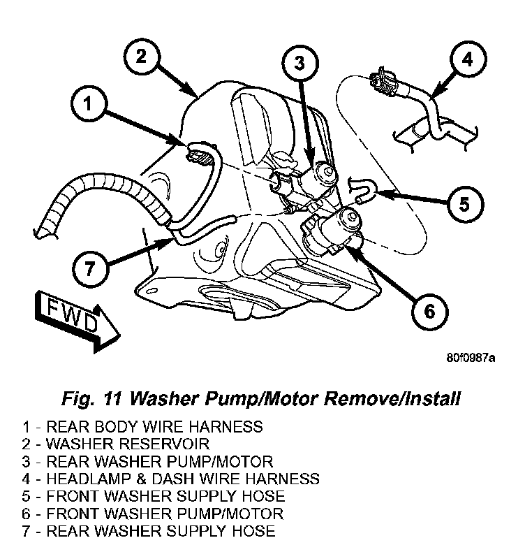 Fig. 11 Washer Pump/Motor Remove/Install: