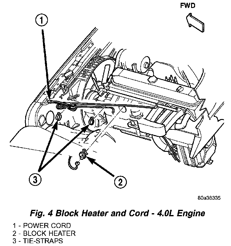 ENGINE BLOCK HEATERREMOVAL - 4.0L