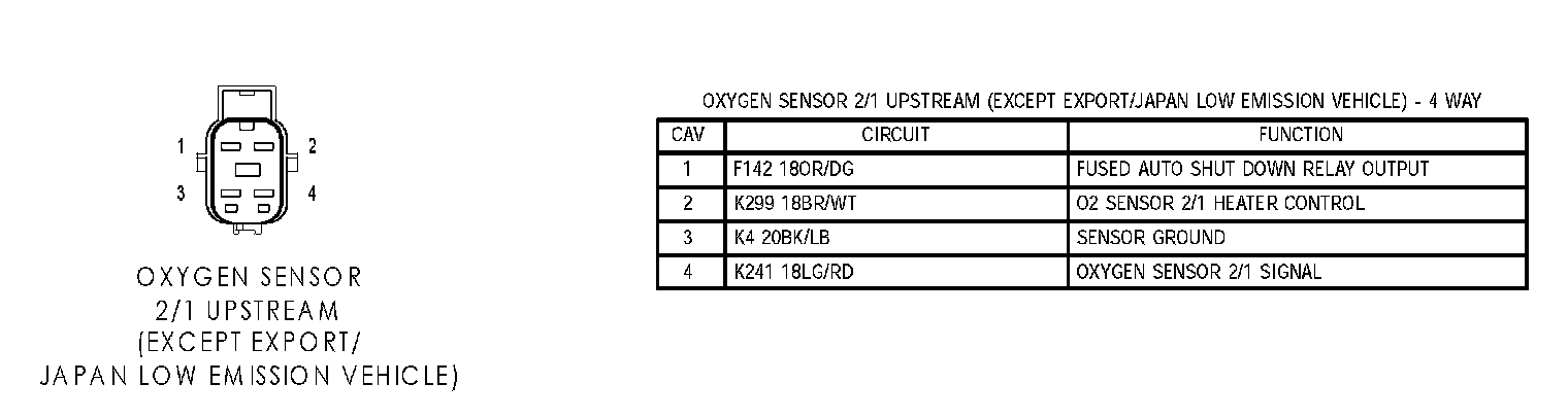 Oxygen Sensor 2/1 Upstream (Except Export/Japan Low Emission Vehicle):