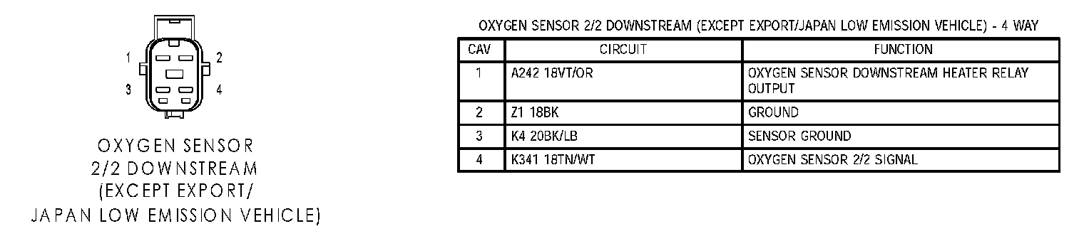 Oxygen Sensor 2/2 Downstream (Except Export/Japan Low Emission Vehicle):