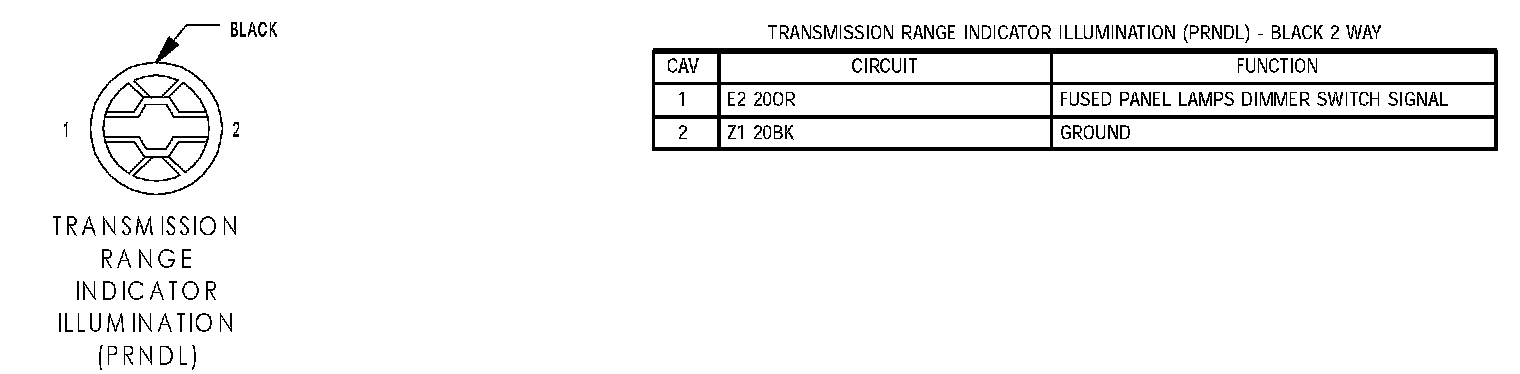 Transmission Range Indicator Illumination (PRNDL):