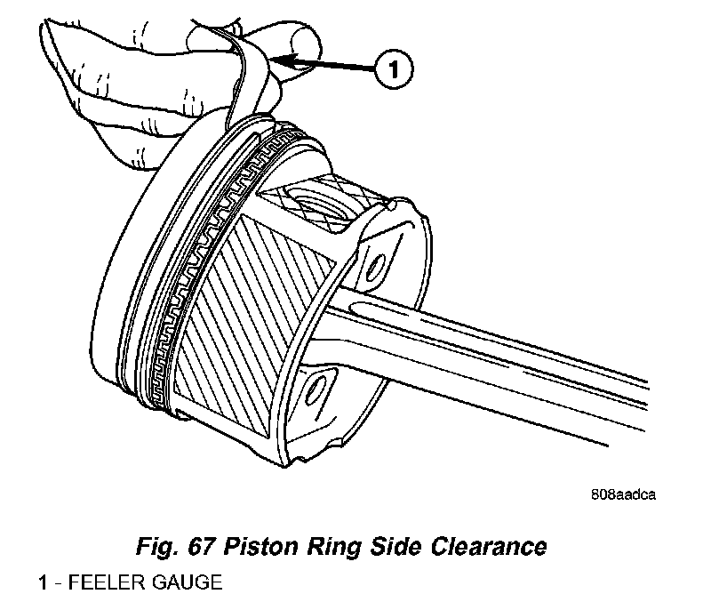2. Check piston ring to groove side clearance (Fig. 67). Refer to Specifications.
