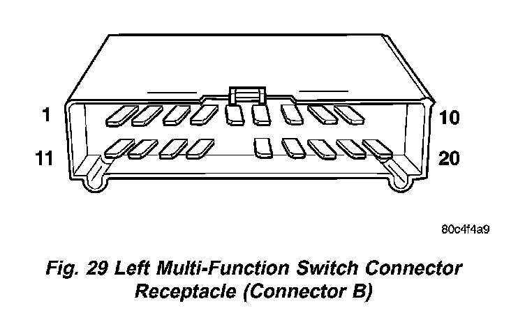 Fig. 29 Left Multi-Function Switch Connector Receptacle (Connector B):