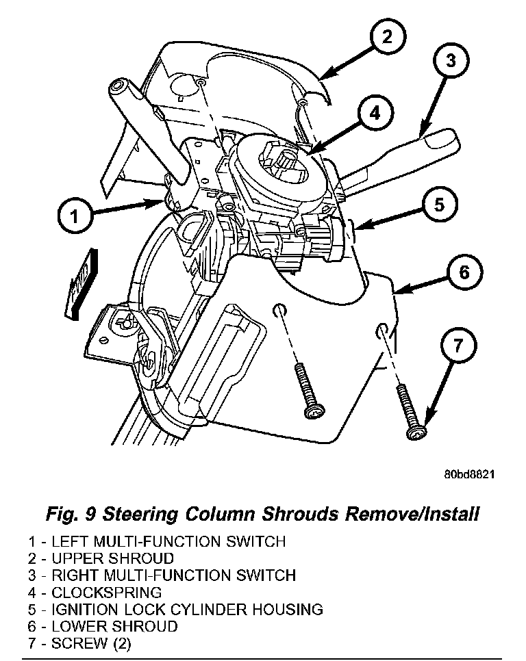 Fig. 9 Steering Column Shrouds Remove/Install: