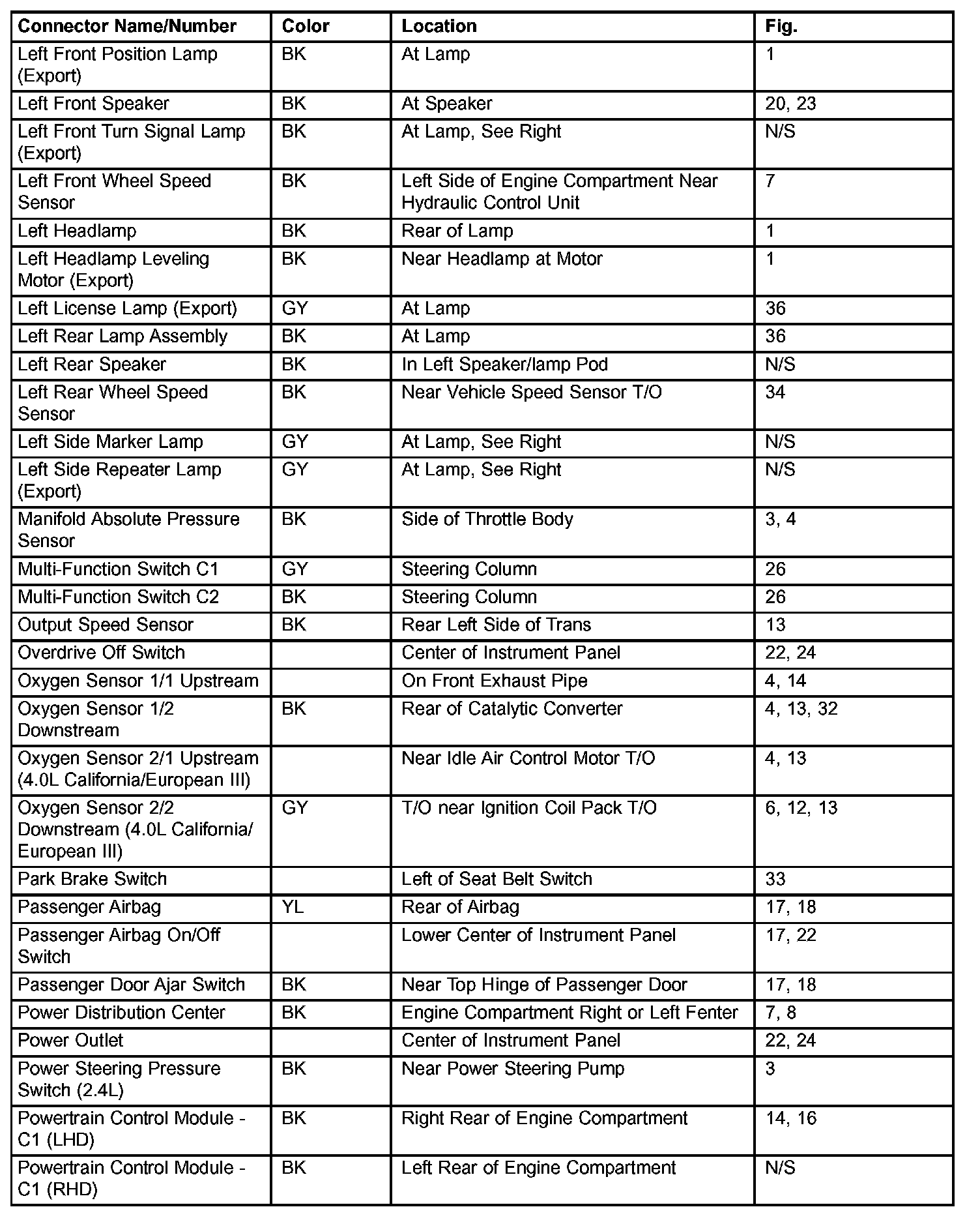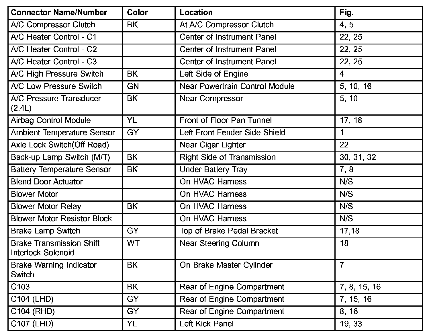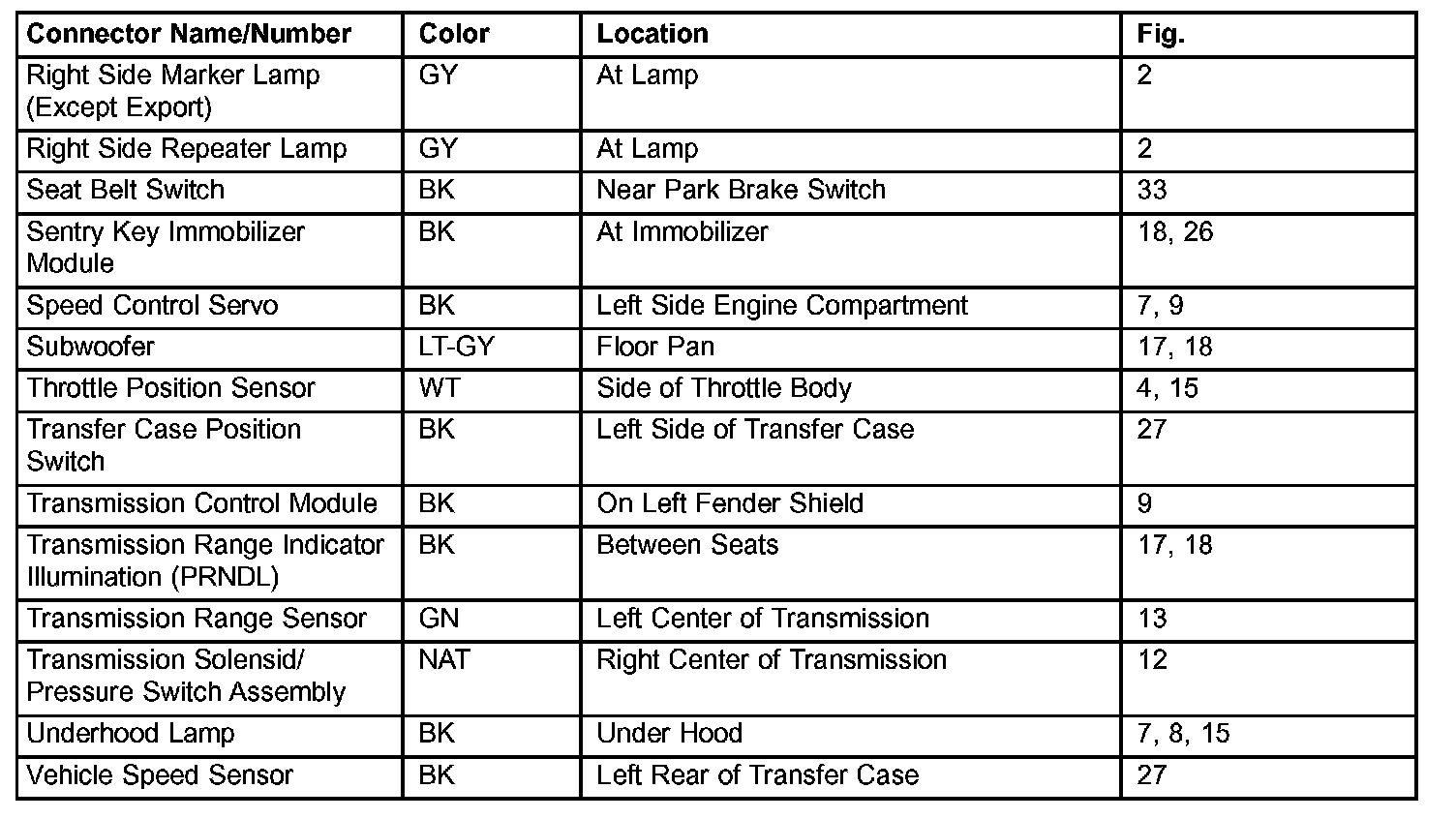 If a link on the index chart to a figure is not provided, that means that the connector and/or figure in question does NOT apply to the vehicle model selected.