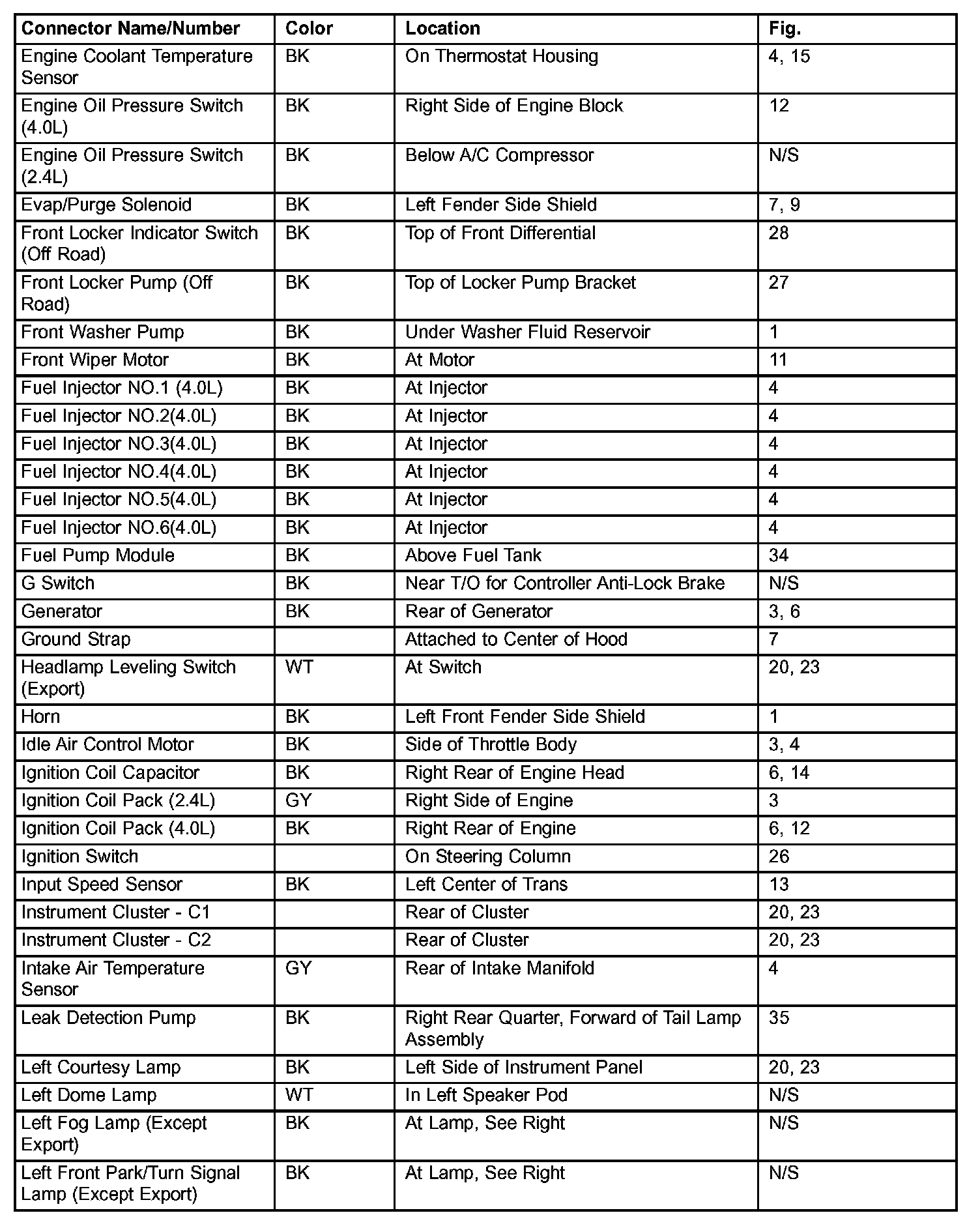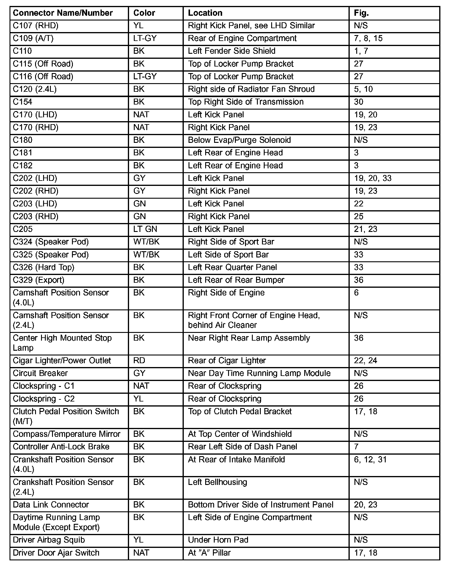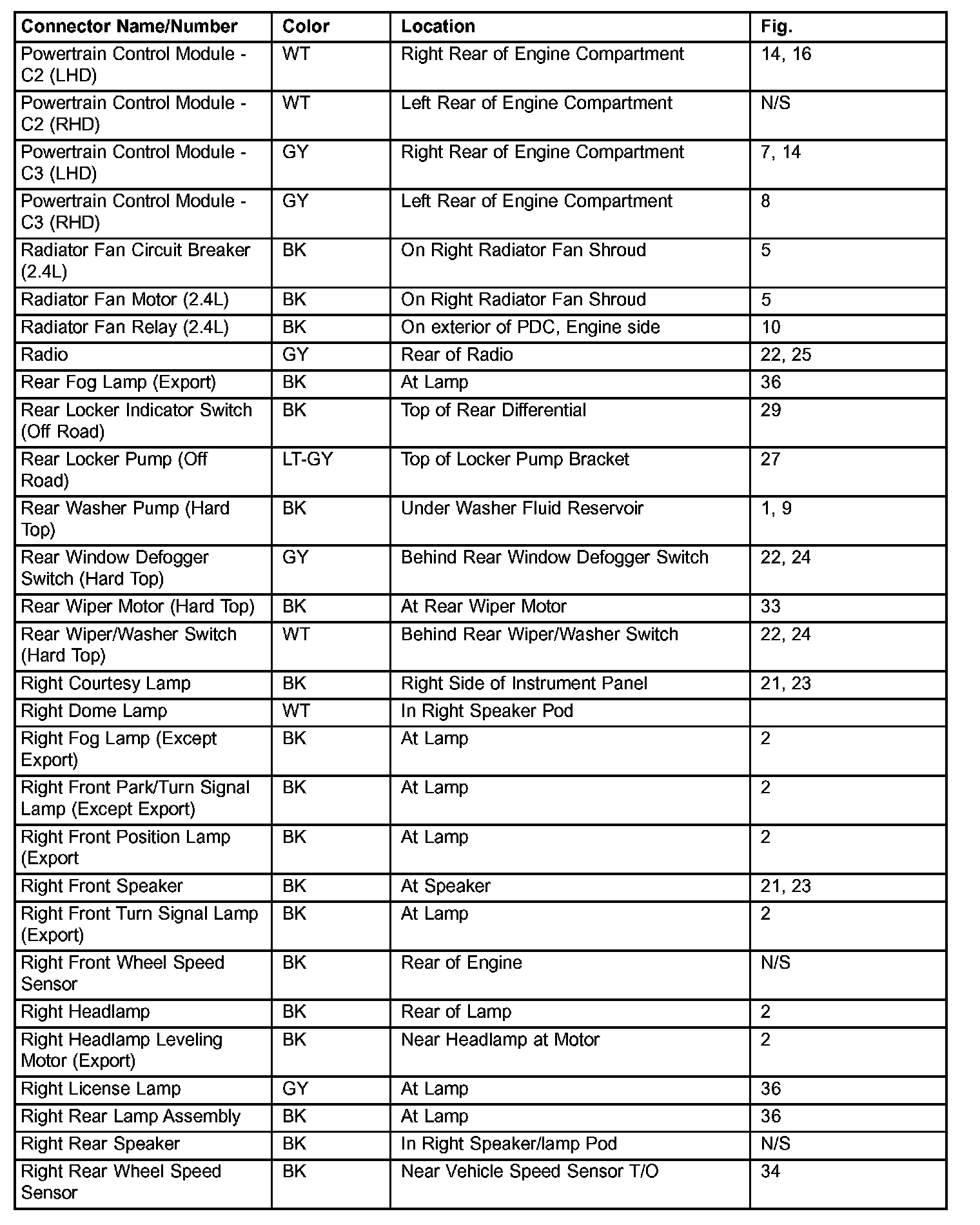 If a link on the index chart to a figure is not provided, that means that the connector and/or figure in question does NOT apply to the vehicle model selected.
