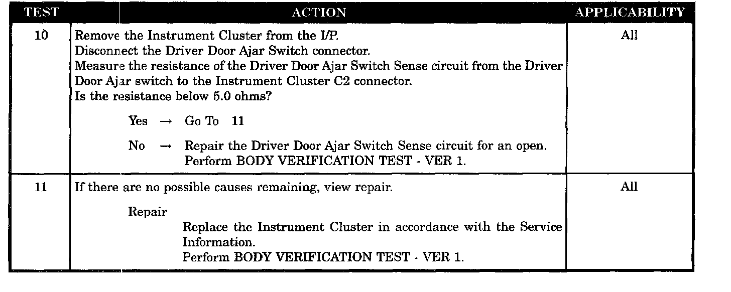 CHIME INOPERATIVE WITH KEY IN IGNITION, DRIVER'S DOOR OPEN