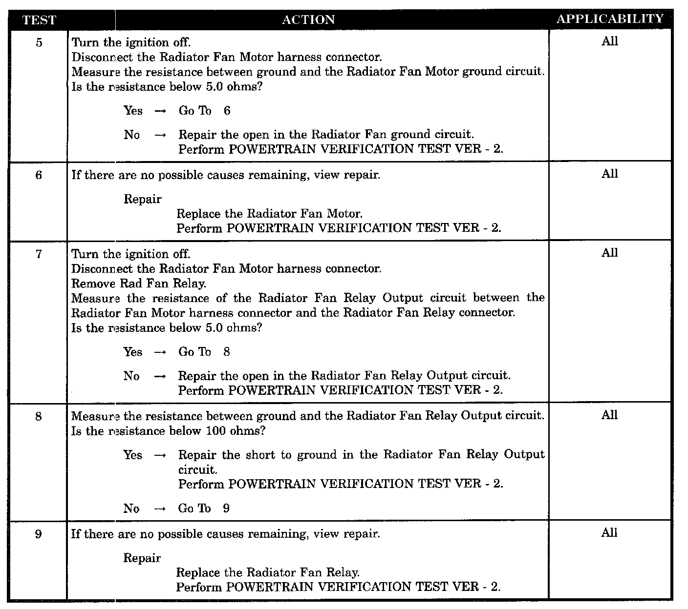 - Radiator fan relay output circuit shorted to ground