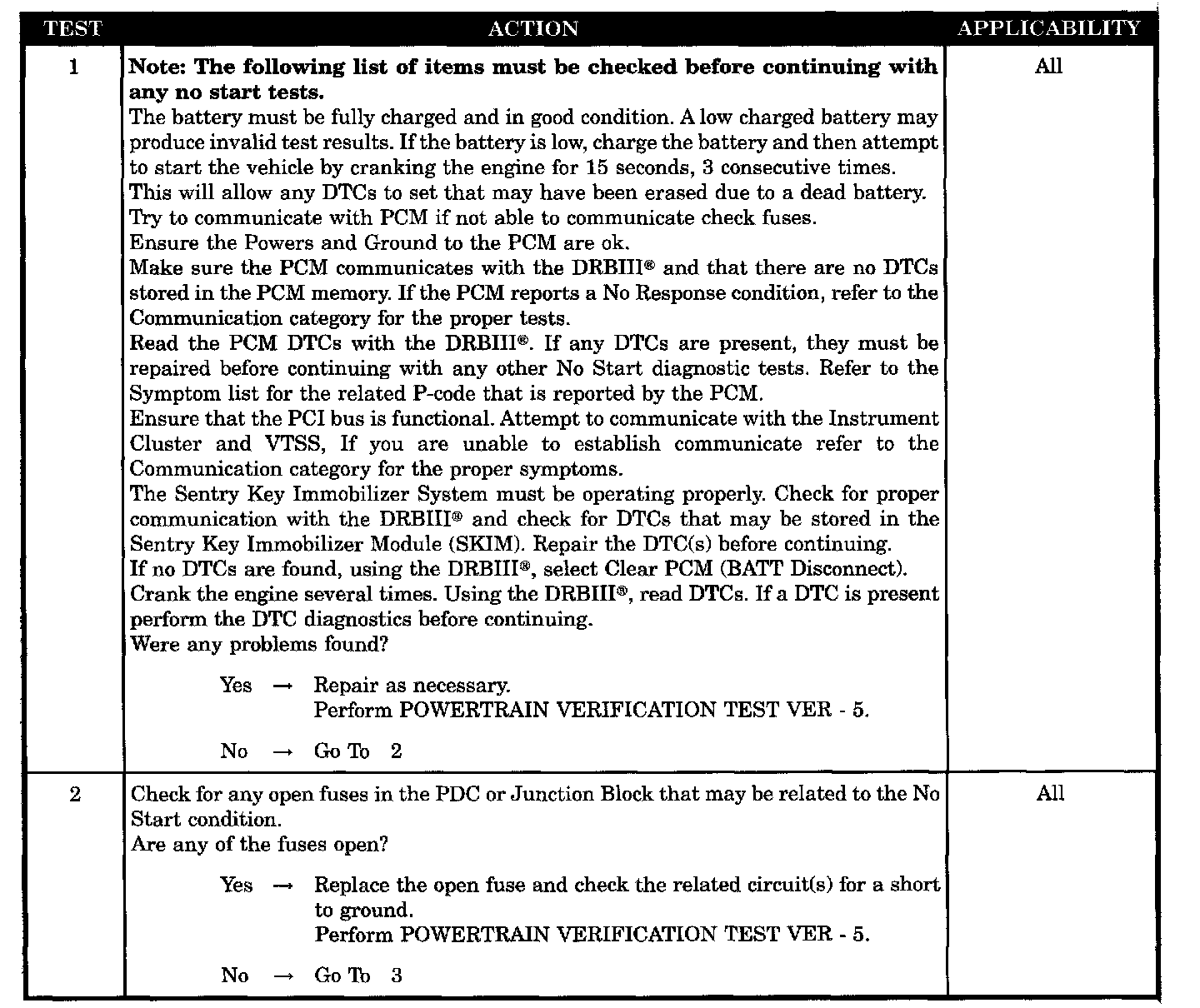 - No start pre-test