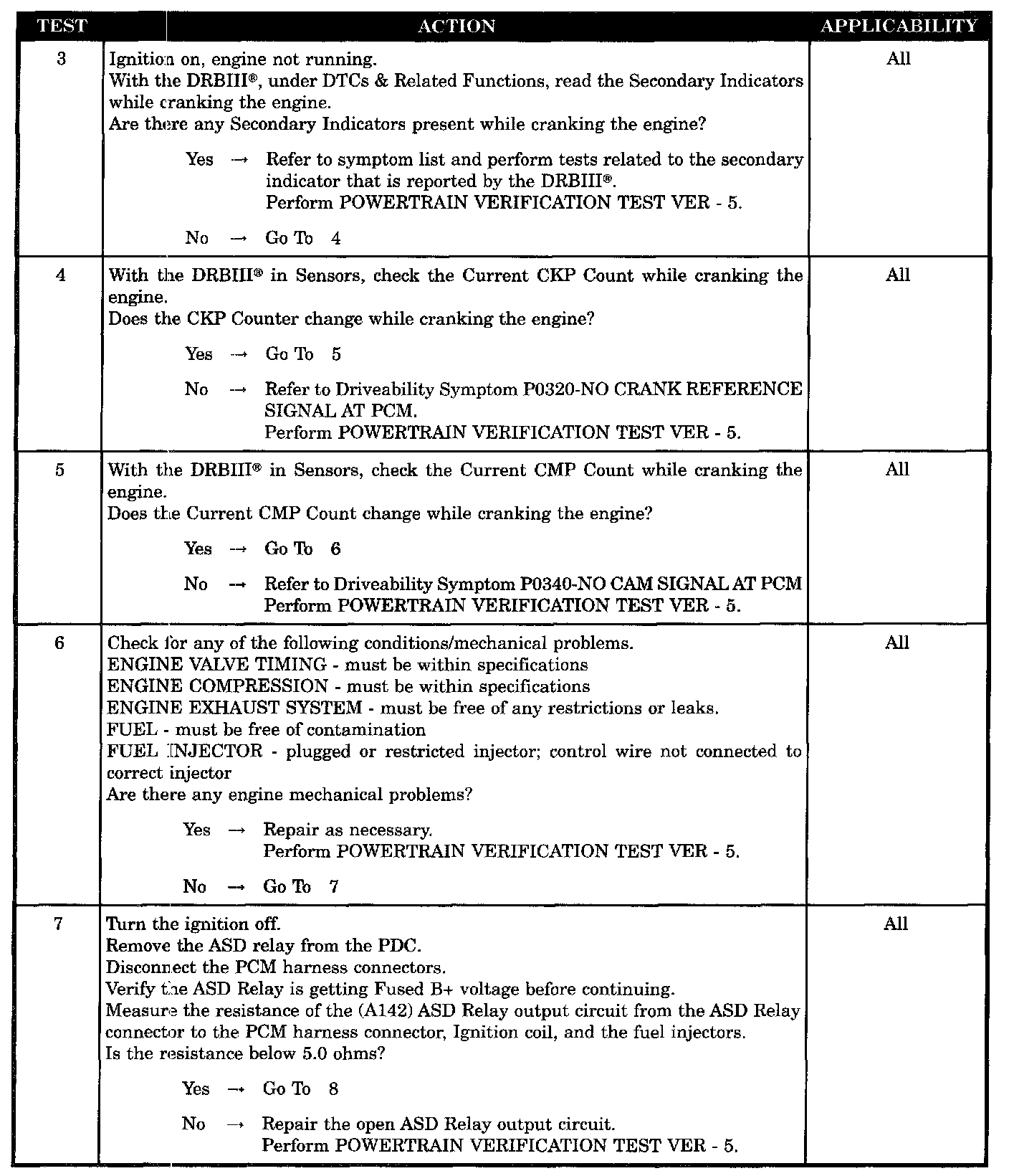 - No CMP sensor signal when cranking engine