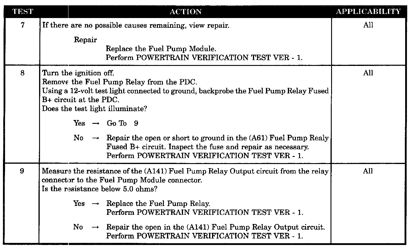 - (A141) fuel pump relay output circuit open