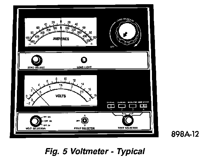 The following procedure should be used to recharge a completely discharged battery. Unless this procedure is properly followed, a good battery may be needlessly replaced.Fig.5 Voltmeter - Typical: