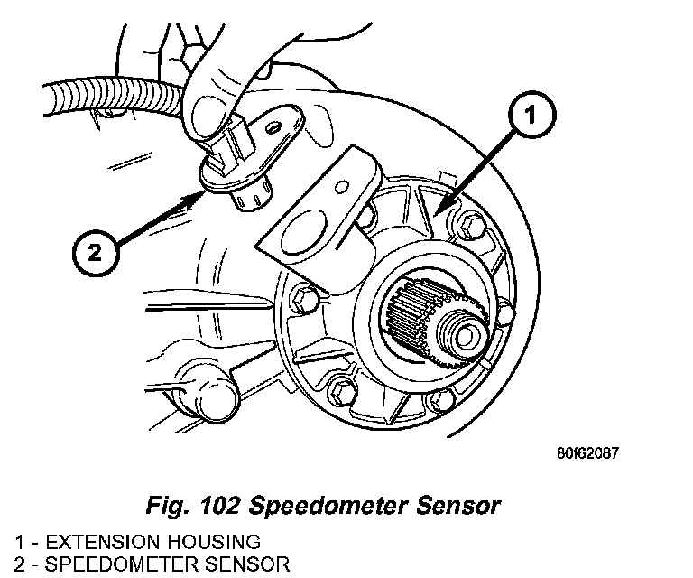 The 3-wire Vehicle Speed Sensor (VSS) (Fig. 102) is located in the transfer case rear extension.