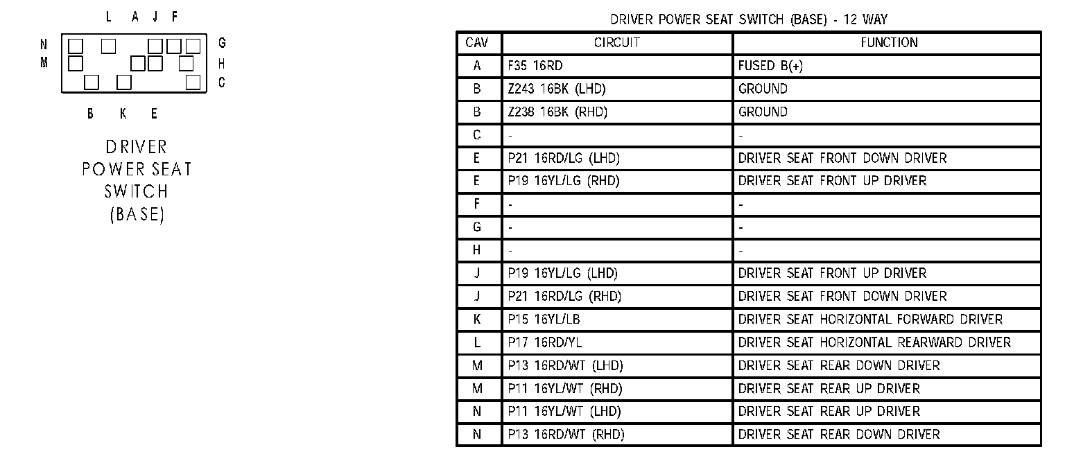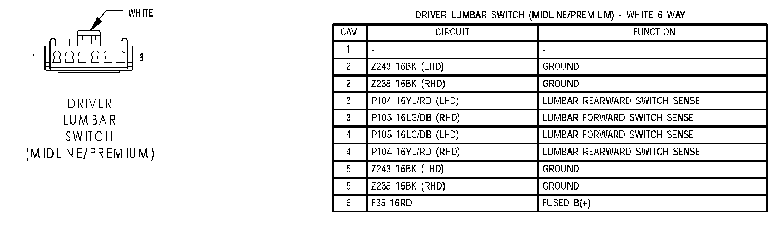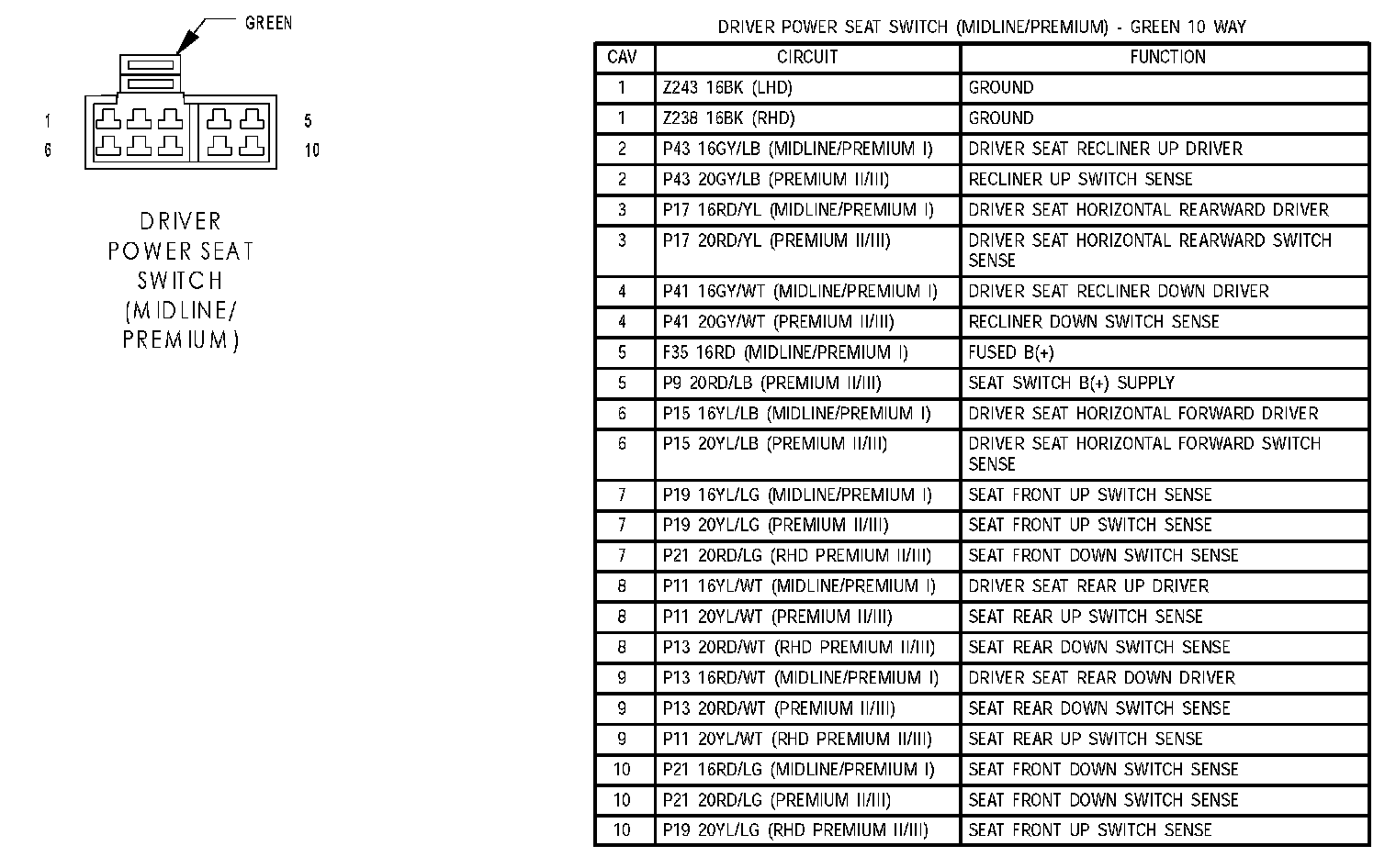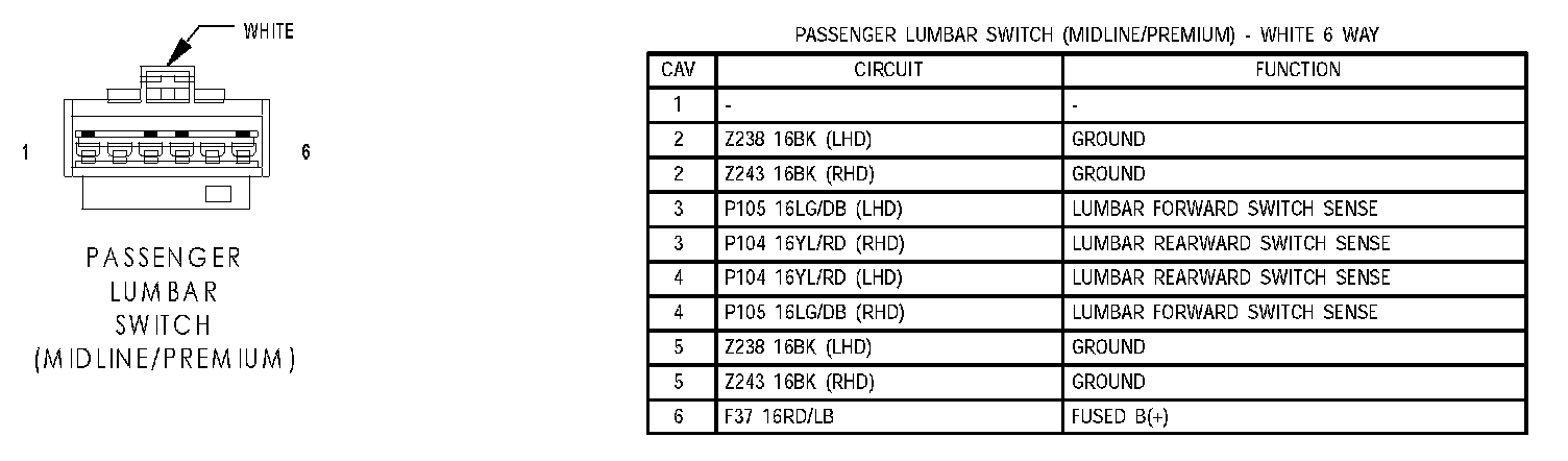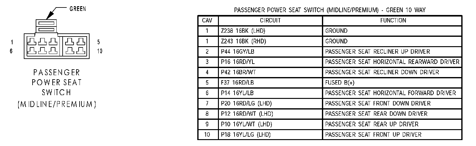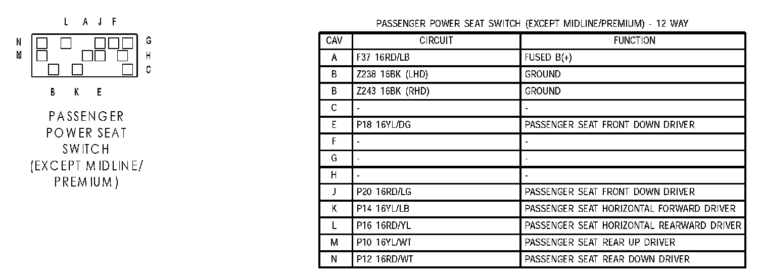Passenger Power Seat Switch (Except/Midline/Premium):
