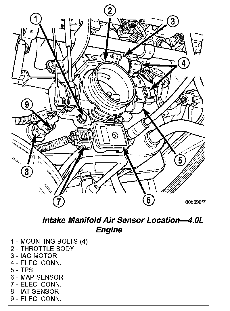 REMOVALIntake Manfold Air Sensor Location - 4.0L Engine: