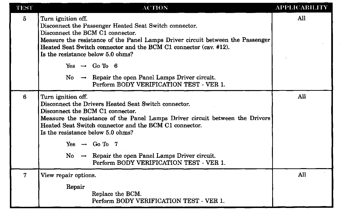 HEATED SEAT SWITCH ILLUMINATION LAMP INOPERATIVE