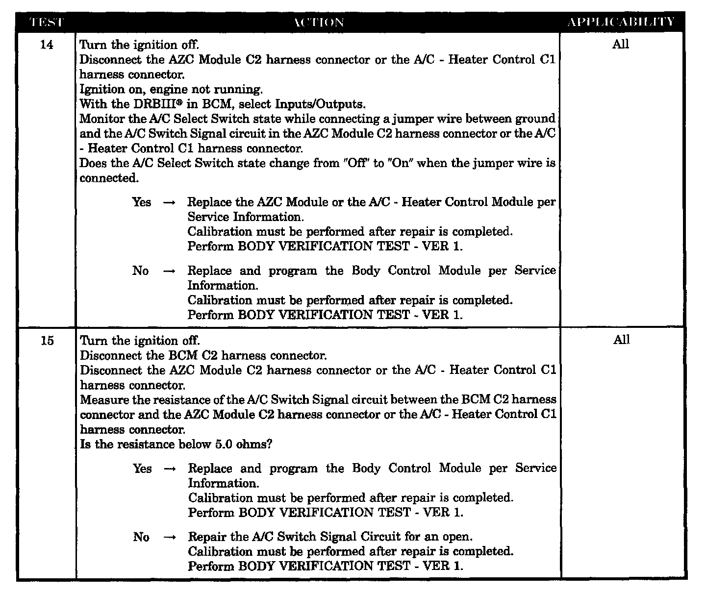- Check A/C switch signal circuit for an open