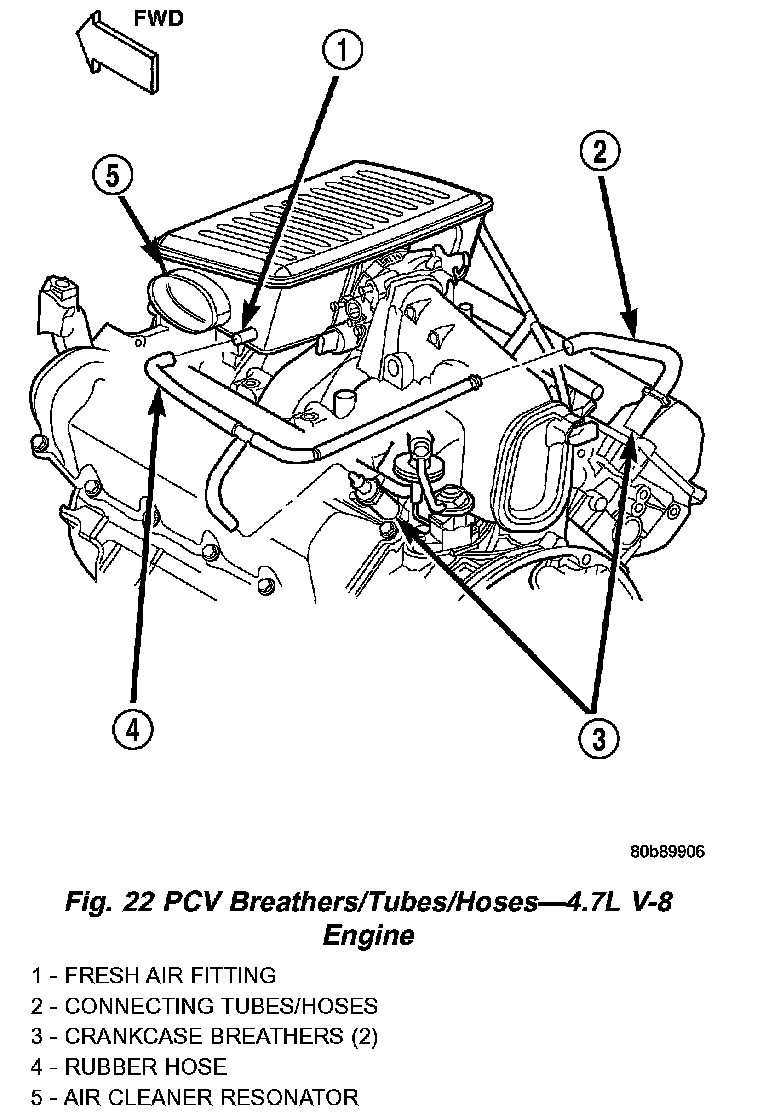 Fig. 22 PCV Breathers/Tubes/Hoses - 4.7L V-8 Engine: