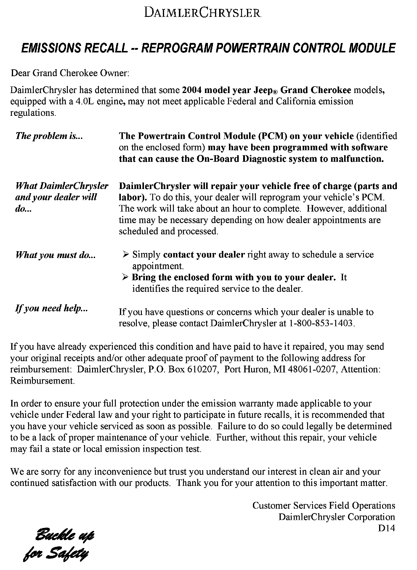 Recall - ECM Programming for OBD Malfunctions