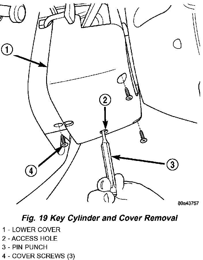 The ignition key must be in the key cylinder for cylinder removal. The key cylinder must be removed first before removing ignition switch.