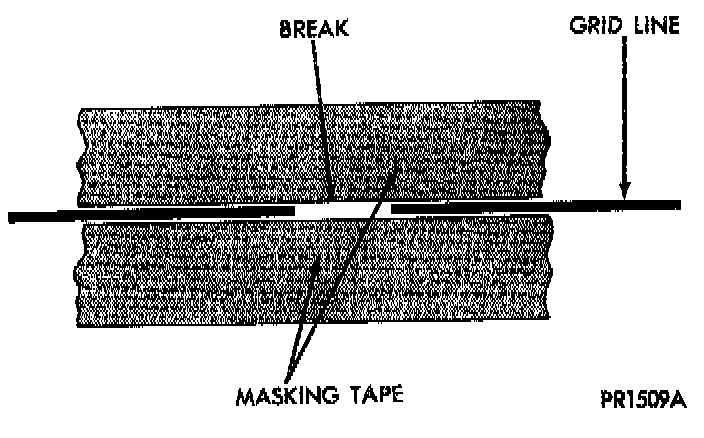 4. For rear glass heating grid line repairs, mask the area to be repaired with masking tape or a template.