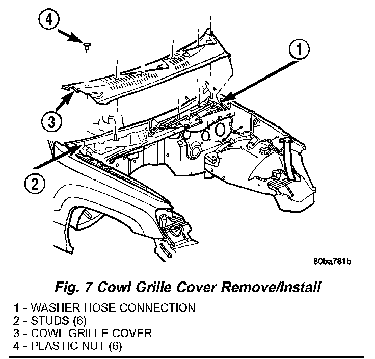 Fig. 7 Cowl Grille Cover Remove/Install: