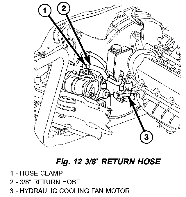 3. Reconnect the rubber return hose to the hydraulic fan motor Tighten the hose.