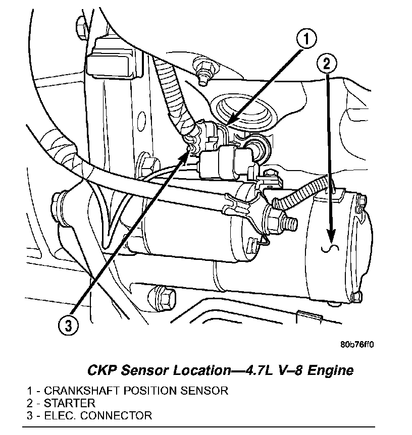 REMOVALCKP Sensor Location - 4.7L V-8 Engine: