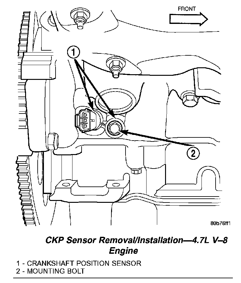 CKP Sensor Removal/Installation - 4.7L V-8 Engine: