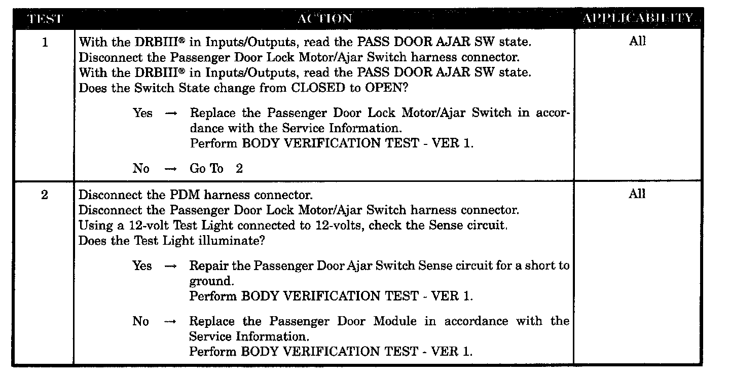 SYMPTOM PASSENGER DOOR AJAR CIRCUIT SHORT TO GROUND