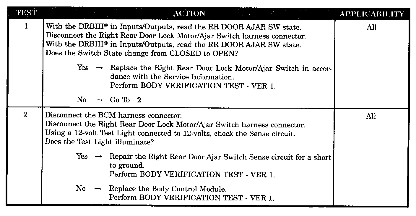 SYMPTOM RIGHT REAR DOOR AJAR CIRCUIT SHORT TO GROUND