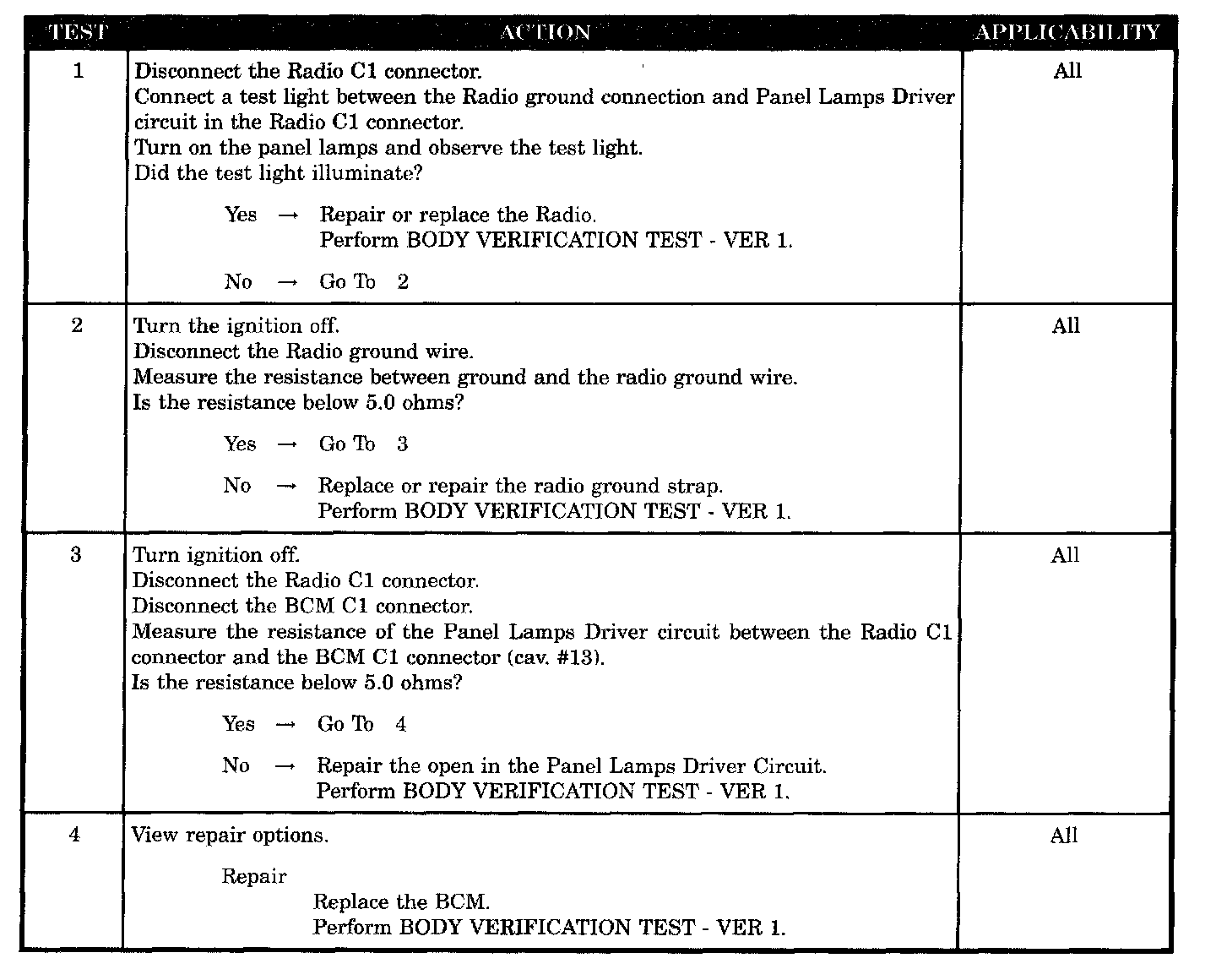 RADIO ILLUMINATION LAMPS INOPERATIVE