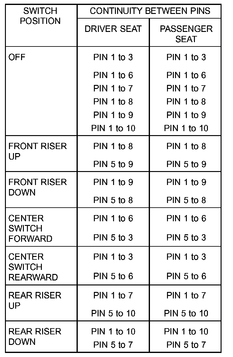 Power Seat Switch Continuity Chart: