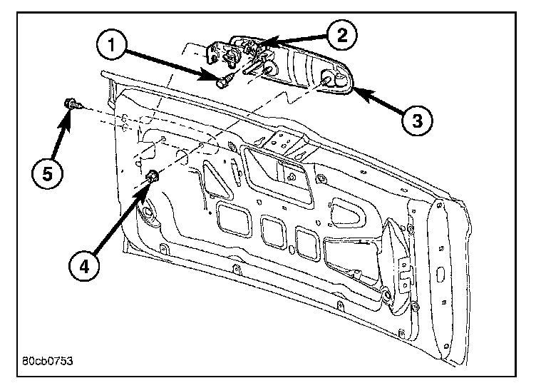 1. Remove the trim panel and waterdam as necessary to gain access to the handle.