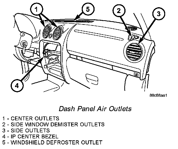 NOTE: The instrument panel air outlets are retained into the outlet housings by a light snap fit.