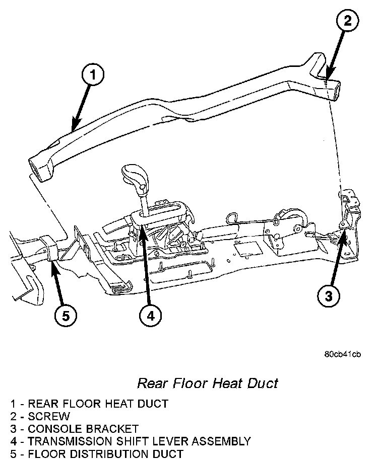 2. Remove the screw that secures the rear floor heat duct to the floor console bracket.