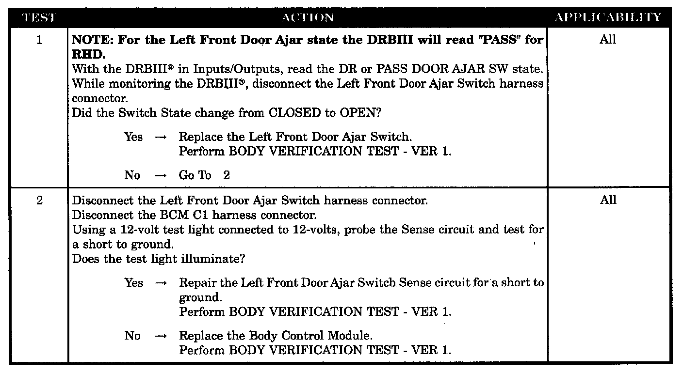 LEFT FRONT DOOR AJAR CIRCUIT SHORTED TO GROUND