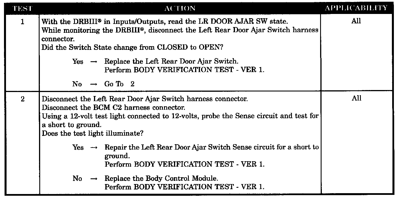 LEFT REAR DOOR AJAR CIRCUIT SHORTED TO GROUND